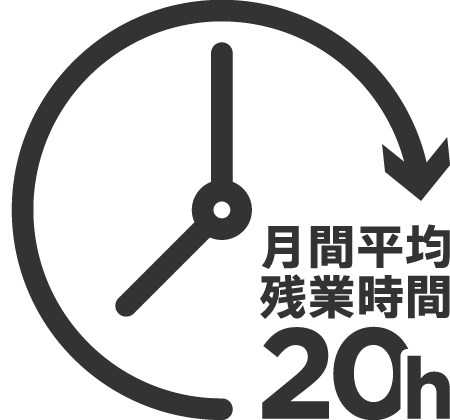 全体平均で月20時間程度。チーム全体で効率的な業務遂行を目指しています。
