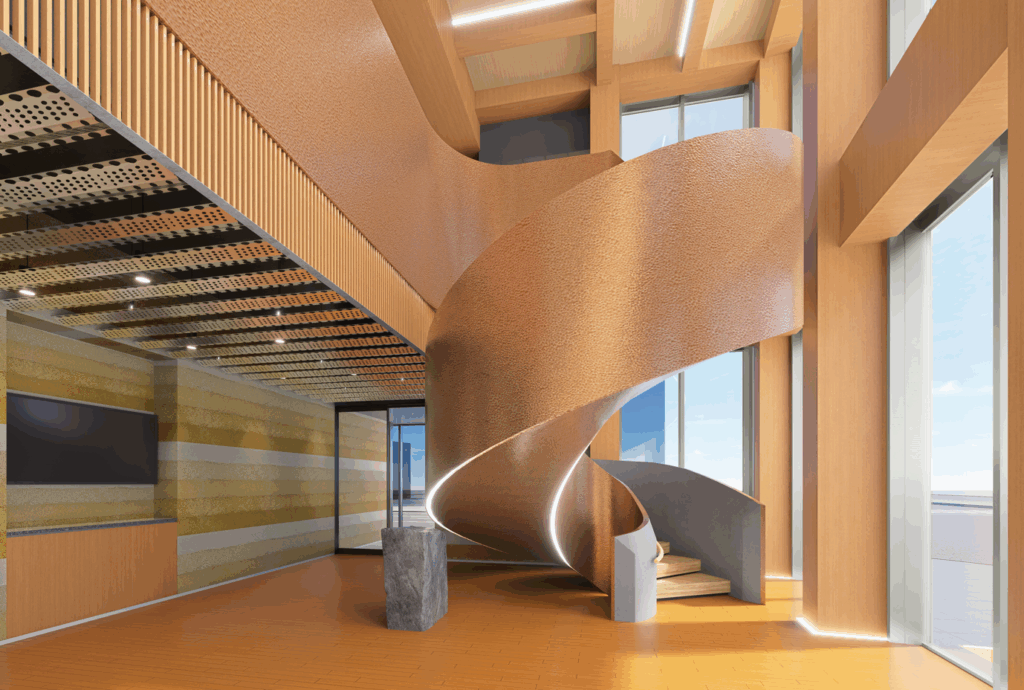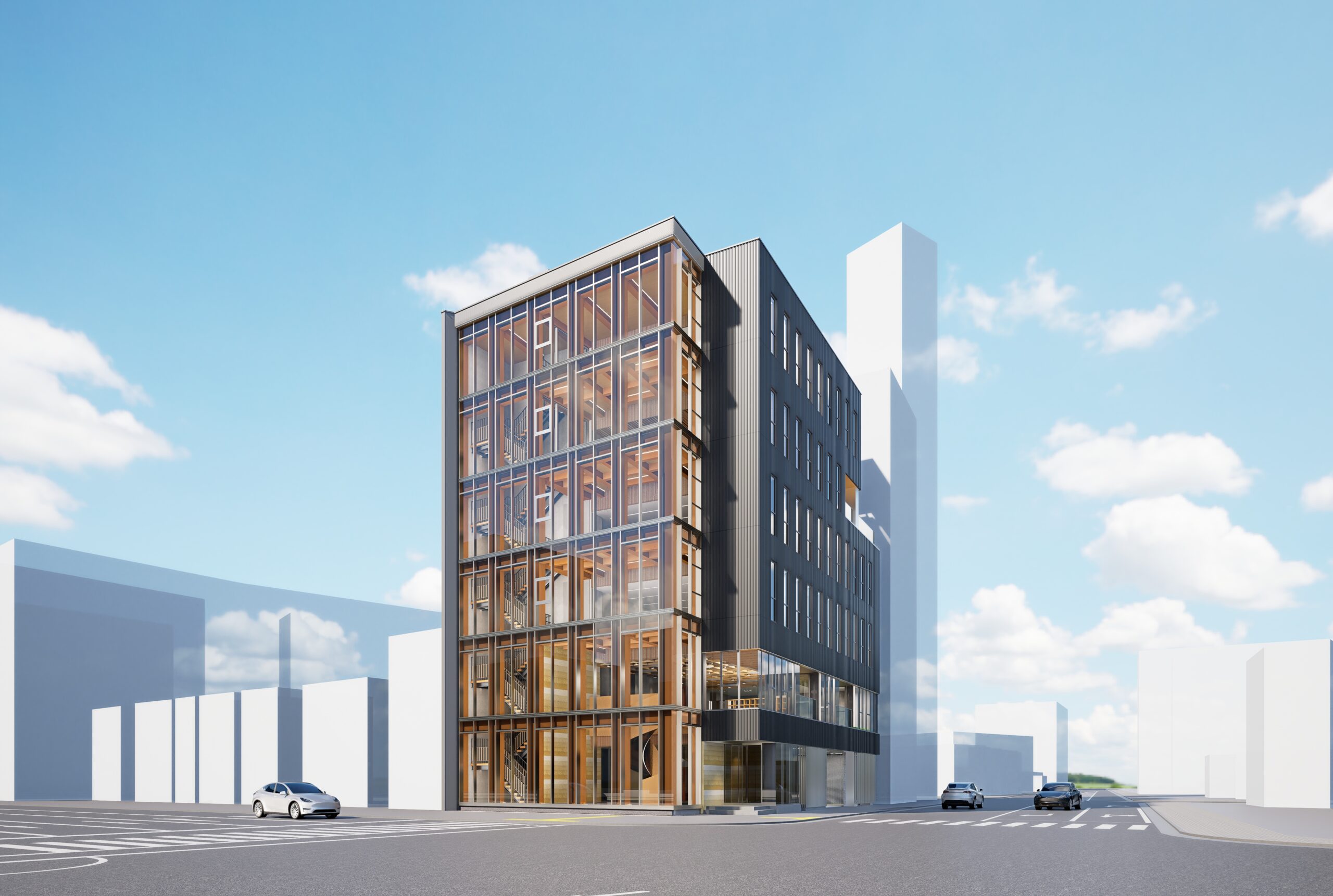 鉄骨と木造を組み合わせた構造により、堅牢さとやさしさを併せ持つ社屋となる予定です。