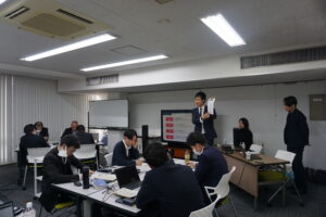 三栄商事では、今後の事業展開に向けて、株式会社EVeMさまの提供するマネジメント支援サービスを社内で体験するワークショップを開催しました。当日は、管理職・営業担当を中心に、計18名が参加。EVeMさまのメソッドを実際に体験し、自社で展開していく可能性を検討する機会となりました。