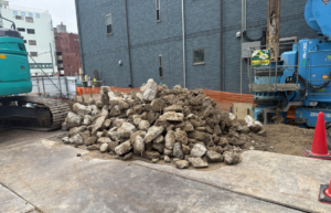 また施工中には旧本社の基礎と思われる埋設物も確認され、この土地の歴史を感じる場面もありました。
